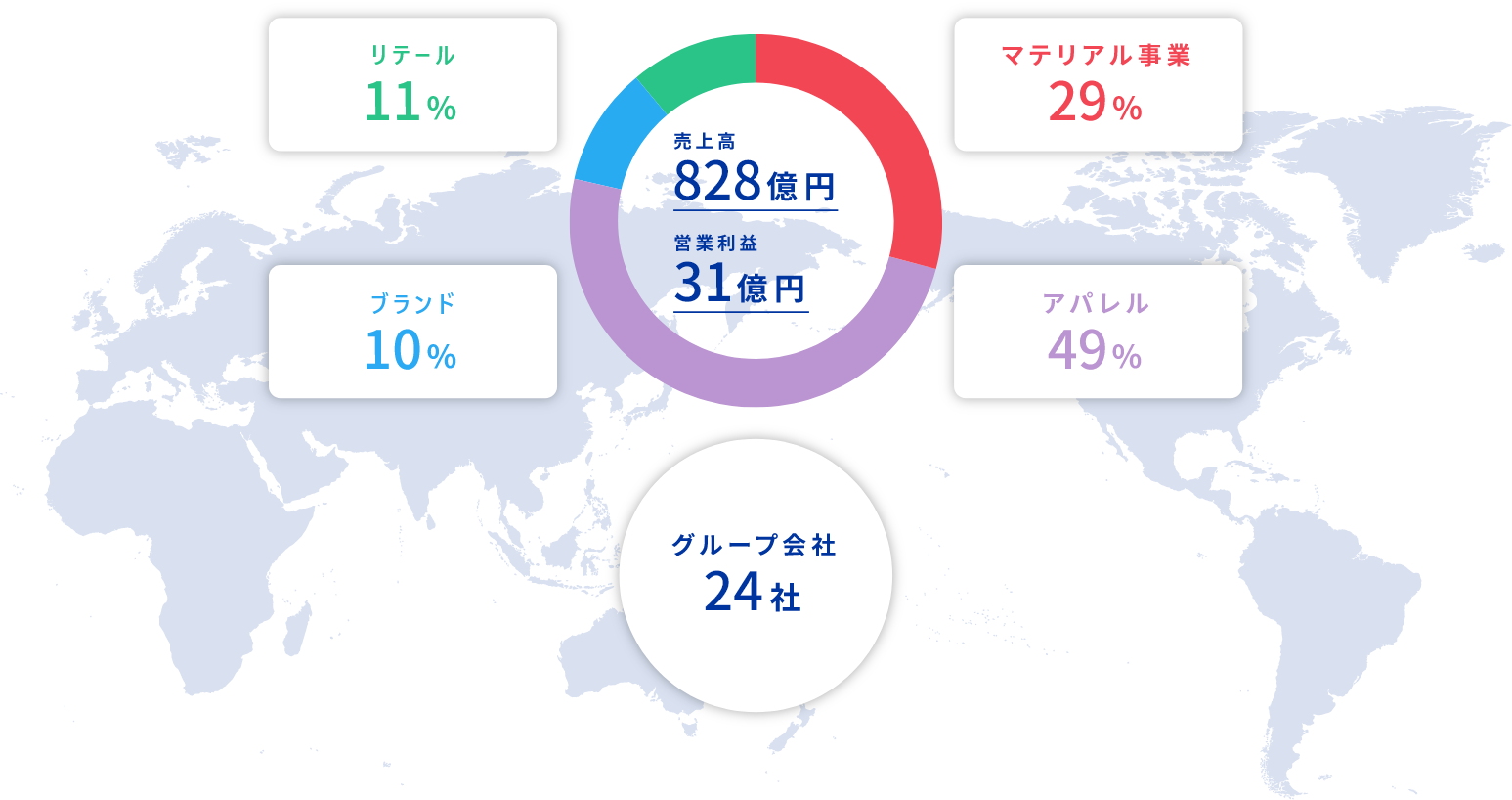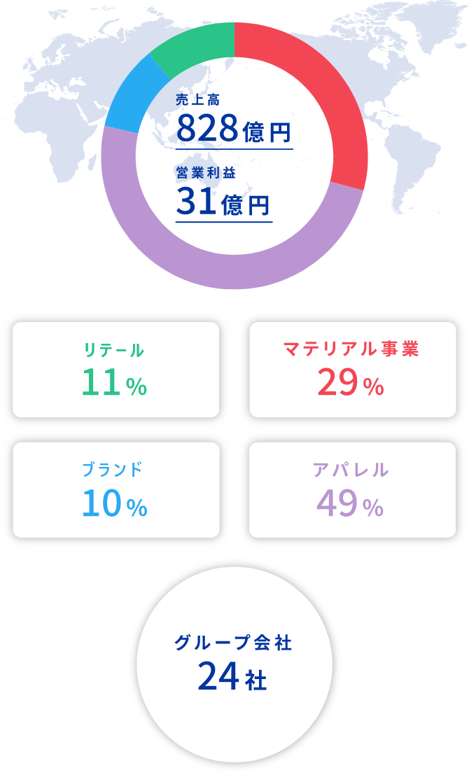 グローバル化とサステナビリティへの需要が加速する繊維製品のマーケットにいち早く対応し、マテリアル(原料)ビジネスの変化にも新たな一手を打ち出し続けています。