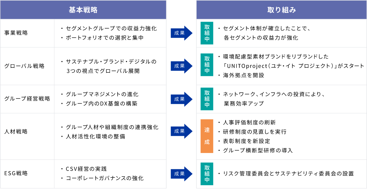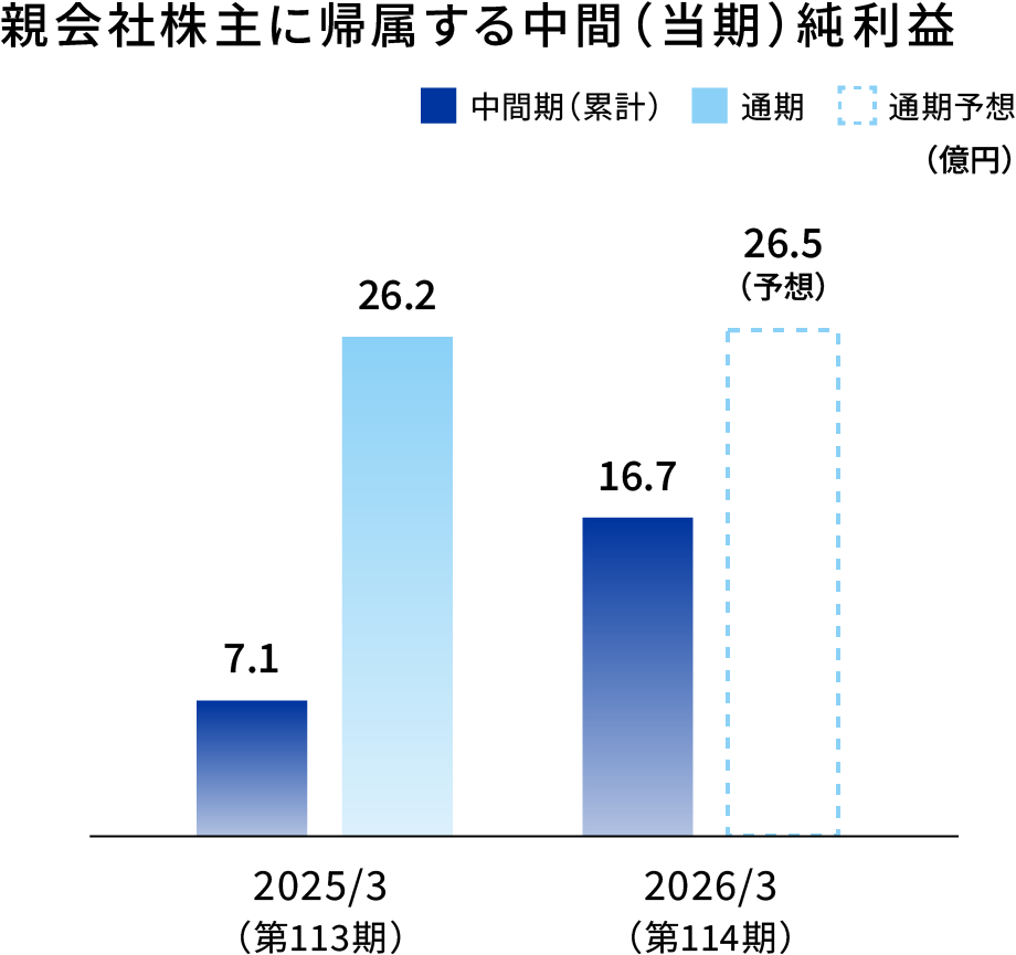 2026年3月期上期の業績につきましては、国内外の厳しい市場環境の影響を受けたマテリアル事業が低調に推移しましたが、基盤事業であるアパレル事業を中心に、生産背景の見直しや取引先との関係強化を進めてきた結果、売上高は微増収となりました。また、コスト構造の見直しや効率的な事業運営の取り組みが奏功し、利益率は改善し大幅な増益を達成することができました。