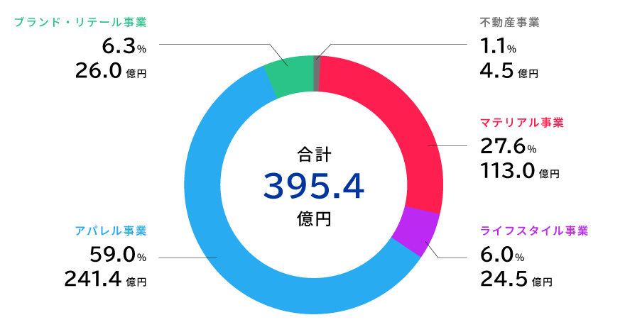 ※組織変更に伴い、第1四半期連結会計期間より「ライフスタイル事業」に含めていた一部の事業組織を「マテリアル事業」に、「マテリアル事業」に含めていた一部の事業組織を「アパレル事業」にそれぞれ変更しております。このため、前第2四半期連結累計期間との比較については、変更後の区分方法に組み替えて比較を行っております