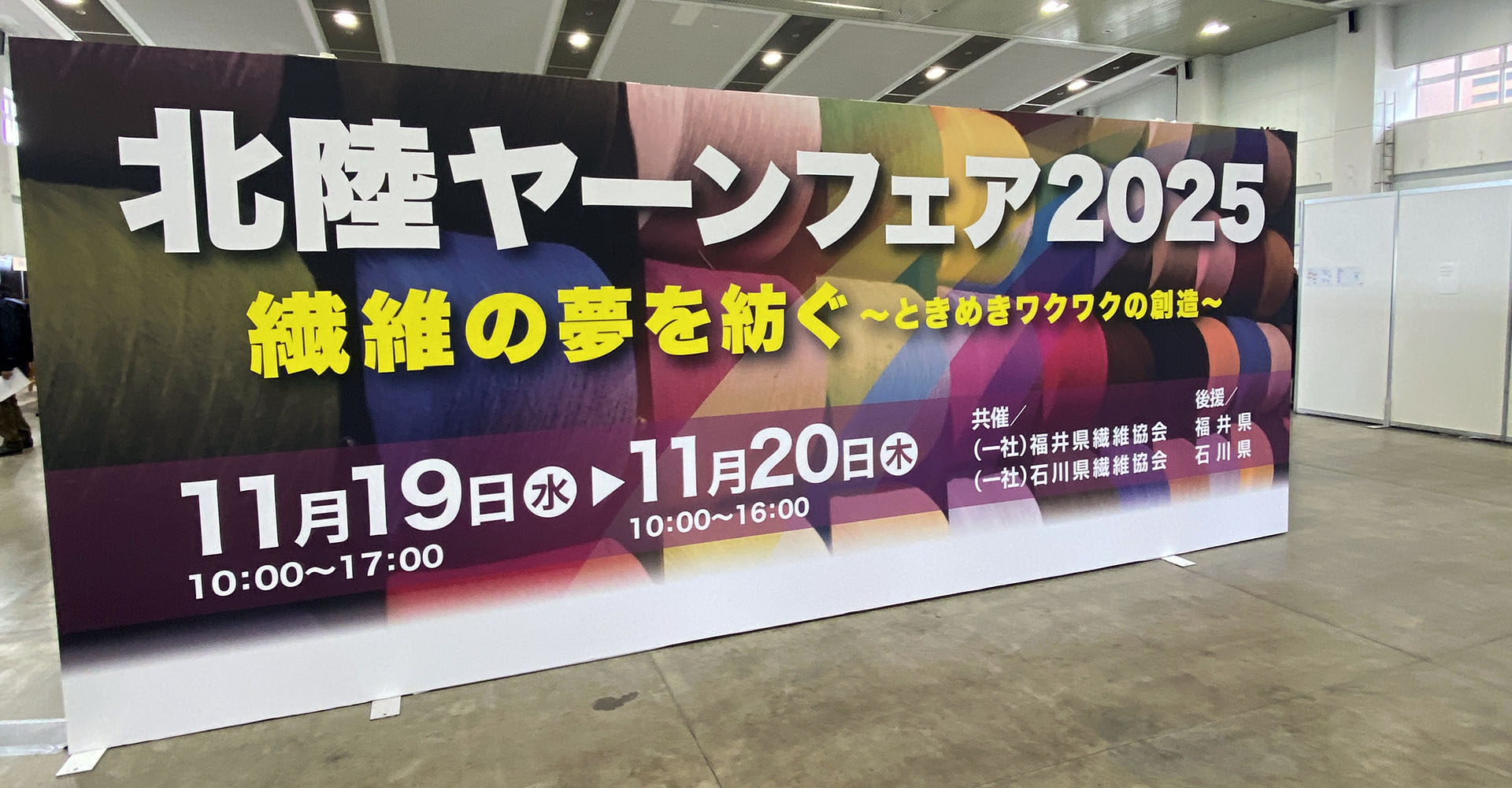 2025年11月19日(水)・20日(木)の2日間、福井県産業会館でサステナブルや高機能な新素材が一堂に会する繊維の祭典「北陸ヤーンフェア2025」が開催され、グローバルマテリアル部門が出展しました。